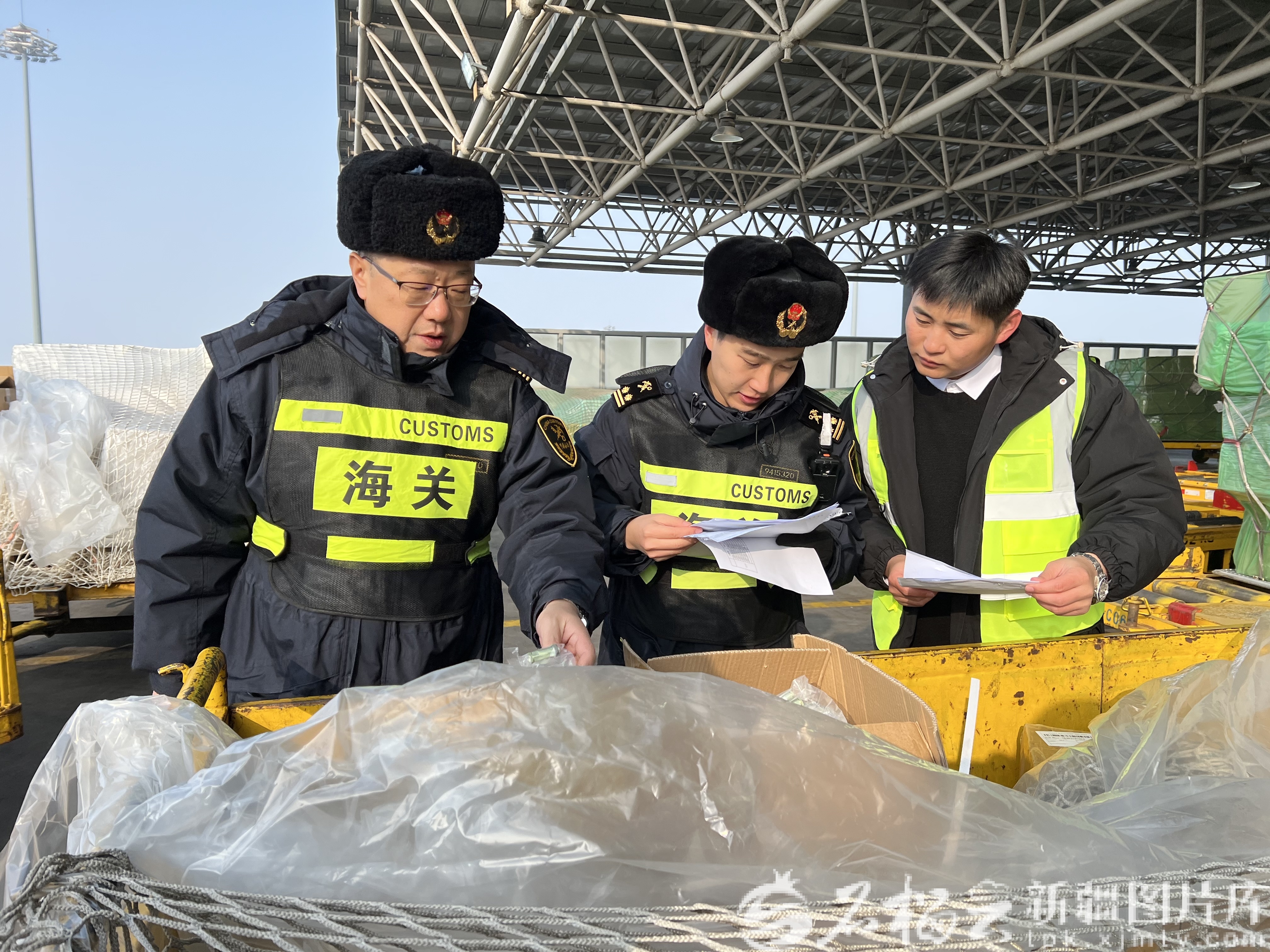 1月7日,乌鲁木齐天山机场海合合员对出境的跨境电商物品实行禁锢。刘飞虎摄